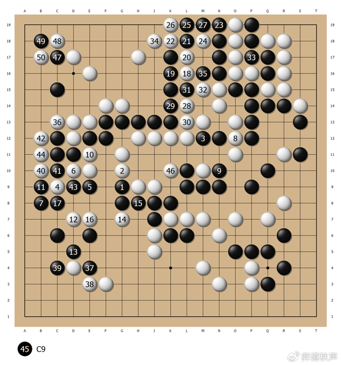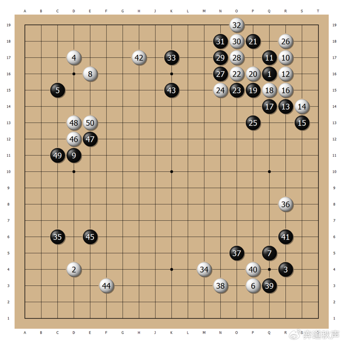 白42再抢上边,黑43继续稳扎稳打。