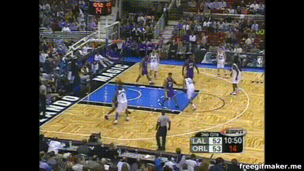 以及科比急速突破后的调整能力,招牌的平步落地后空中扭肩: